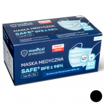 Certyfikowane, 3 -warstwowe maseczki medyczne (Typ IIR ES) CZARNE Zestaw 50 sztuk